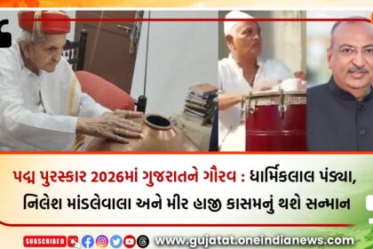 પદ્મ પુરસ્કાર 2026માં ગુજરાતને ગૌરવ : ધાર્મિકલાલ પંડ્યા, નિલેશ માંડલેવાલા અને મીર હાજી કાસમનું થશે સન્માન
