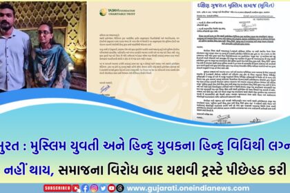 સુરત : મુસ્લિમ યુવતી અને હિન્દુ યુવકના હિન્દુ વિધિથી લગ્ન નહીં થાય, સમાજના વિરોધ બાદ યશવી ટ્રસ્ટે પીછેહઠ કરી