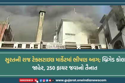 સુરતની રાજ ટેક્સટાઇલ માર્કેટમાં ભીષણ આગ; બ્રિગેડ કોલ જાહેર, 250 ફાયર જવાનો તૈનાત