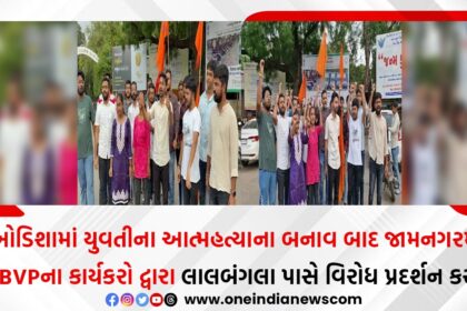 ઓડિશામાં યુવતીના આત્મહત્યાના બનાવ બાદ જામનગરમાં ABVPના કાર્યકરો દ્વારા લાલબંગલા પાસે વિરોધ પ્રદર્શન કરાયું