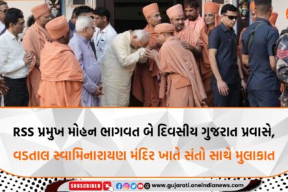 RSS પ્રમુખ મોહન ભાગવત બે દિવસીય ગુજરાત પ્રવાસે, વડતાલ સ્વામિનારાયણ મંદિર ખાતે સંતો સાથે મુલાકાત