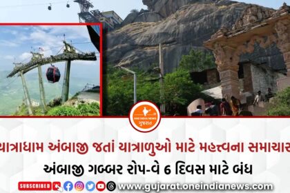 સુપ્રસિદ્ધ અંબાજી યાત્રાધામના ગબ્બર પર જવા માટે ઉપયોગમાં લેવાતી રોપ-વે સેવા આગામી 6 દિવસ માટે બંધ રહેશે. વહીવટી તંત્ર દ્વારા આ જાહેરાત યાત્રિકોની સુરક્ષા અને સલામતીને ધ્યાનમાં રાખીને કરવા?...