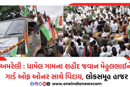 અમરેલી : ધામેલ ગામના શહીદ જવાન મેહુલભાઈને ગાર્ડ ઓફ ઓનર સાથે વિદાય, લોકસમૂહ હાજર
