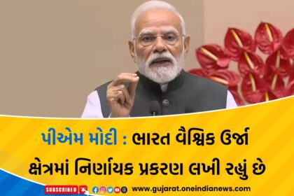 પ્રધાનમંત્રી નરેન્દ્ર મોદીએ શુક્રવારે કહ્યું કે ભારત વૈશ્વિક ઉર્જા ક્ષેત્રમાં મહત્વપૂર્ણ પ્રકરણ લખી રહ્યું છે. તેમના ટિપ્પણી અનુસાર, આ પરિવર્તન વીજળીકરણ, સ્વચ્છ ઉર્જા અને સ્થાનિક ઉત્પાદ?...