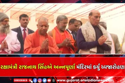 રક્ષામંત્રી રાજનાથ સિંહએ અન્નપૂર્ણા મંદિરમાં કર્યું ધ્વજારોહણ
