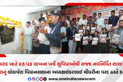 થરાદ ખાતે ૪૭.૫૪ લાખના ખર્ચે સુવિધાઓથી સજ્જ નવનિર્મિત શાળા સંકુલનું લોકાર્પણ કરતા વિધાનસભાના અધ્યક્ષશંકરભાઈ ચૌધરીના વરદ હસ્તે કરાયું