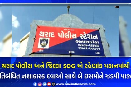 થરાદ પોલીસ અને જિલ્લા SOG એ રહેણાંક મકાનમાંથી પ્રતિબંધિત નશાકારક દવાઓ સાથે બે ઇસમોને ઝડપી પાડ્યા