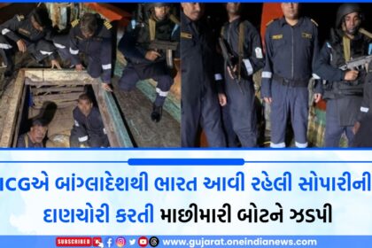 ICGએ બાંગ્લાદેશથી ભારત આવી રહેલી સોપારીની દાણચોરી કરતી માછીમારી બોટને ઝડપી