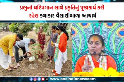 પ્રભુનાં ચરિત્રગાન સાથે પ્રકૃતિનું પૂજાકાર્ય કરી રહેલ કથાકાર વૈશાલીબાળા આચાર્ય