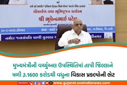 મુખ્યમંત્રીની વર્ચ્યુઅલ ઉપસ્થિતિમાં તાપી જિલ્લાને મળી રૂ.1600 કરોડથી વધુના વિકાસ પ્રકલ્પોની ભેટ