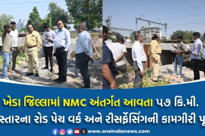 ખેડા જિલ્લામાં NMC અંતર્ગત આવતા ૫૭ કિ.મી. વિસ્તારના રોડ પેચ વર્ક અને રીસર્ફેસિંગની કામગીરી પૂર્ણ