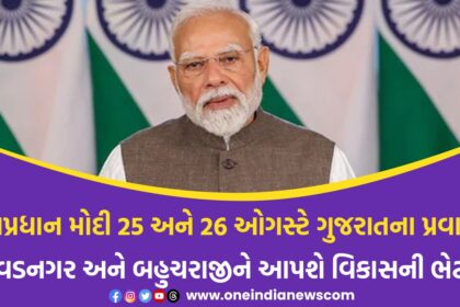 વડાપ્રધાન નરેન્દ્ર મોદી આગામી 24 અને 25 ઓગસ્ટે બે દિવસીય ગુજરાત પ્રવાસે આવશે, જે વિકાસ અને રાજકીય બંને દ્રષ્ટિએ અત્યંત મહત્વપૂર્ણ માનવામાં આવી રહ્યો છે. આ પ્રવાસ દરમિયાન તેઓ પોતાના વતન વડનગર, ?...