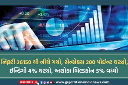નિફ્ટી 26150 થી નીચે ગયો, સેન્સેક્સ 200 પોઈન્ટ ઘટ્યો, ઈન્ડિગો 4% ઘટ્યો, અશોકા બિલ્ડકોન 5% વધ્યો