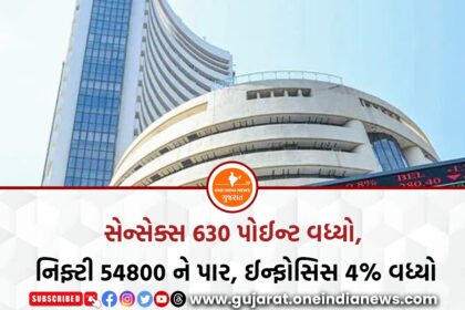 સેન્સેક્સ 630 પોઈન્ટ વધ્યો, નિફ્ટી 54800 ને પાર, ઈન્ફોસિસ 4% વધ્યો