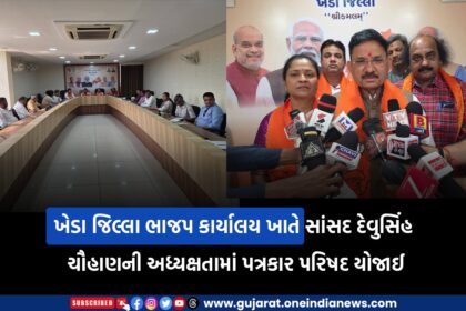 ખેડા જિલ્લા ભાજપ કાર્યાલય ખાતે સાંસદ દેવુસિંહ ચૌહાણની અધ્યક્ષતામાં પત્રકાર પરિષદ યોજાઈ