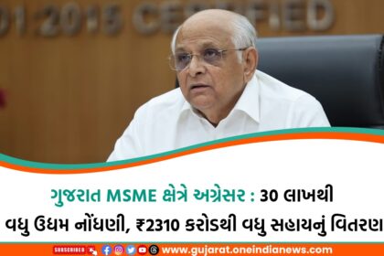 ગુજરાત MSME ક્ષેત્રે અગ્રેસર : 30 લાખથી વધુ ઉદ્યમ નોંધણી, ₹2310 કરોડથી વધુ સહાયનું વિતરણ