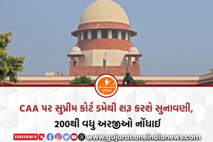 સુપ્રીમ કોર્ટે ગુરુવારે નાગરિકતા (સુધારા) કાયદા (CAA) અને તેના નિયમો વિરુદ્ધ દાખલ થયેલી અરજીઓની સુનાવણી માટે આ વર્ષ 5 મે, 2026 ની તારીખ ફાળવવાની જાહેરાત કરી છે. મુખ્ય ન્યાયાધીશ (CJI) સૂર્યકાંતે, જસ્ટિ?...