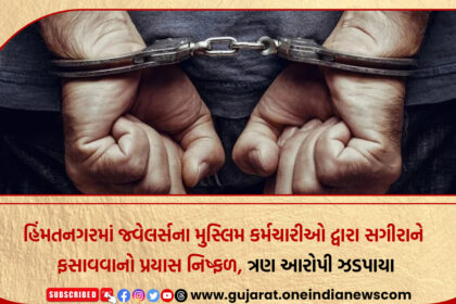હિંમતનગરમાં જ્વેલર્સના મુસ્લિમ કર્મચારીઓ દ્વારા સગીરાને ફસાવવાનો પ્રયાસ નિષ્ફળ, ત્રણ આરોપી ઝડપાયા