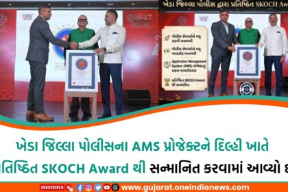 ખેડા જિલ્લા પોલીસના AMS પ્રોજેક્ટને દિલ્હી ખાતે પ્રતિષ્ઠિત SKOCH Award થી સન્માનિત કરવામાં આવ્યો છે