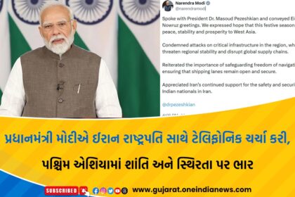 પ્રધાનમંત્રી મોદીએ ઈરાન રાષ્ટ્રપતિ સાથે ટેલિફોનિક ચર્ચા કરી, પશ્ચિમ એશિયામાં શાંતિ અને સ્થિરતા પર ભાર