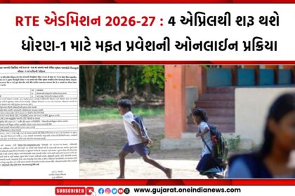 RTE એડમિશન 2026-27 : 4 એપ્રિલથી શરૂ થશે ધોરણ-1 માટે મફત પ્રવેશની ઓનલાઈન પ્રક્રિયા