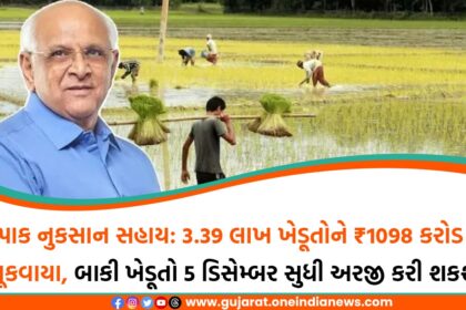 પાક નુકસાન સહાય : 3.39 લાખ ખેડૂતોને ₹1098 કરોડ ચૂકવાયા, બાકી ખેડૂતો 5 ડિસેમ્બર સુધી અરજી કરી શકશે