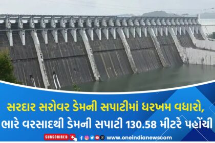 સરદાર સરોવર ડેમની સપાટીમાં ધરખમ વધારો, ભારે વરસાદથી ડેમની સપાટી 130.58 મીટરે પહોંચી