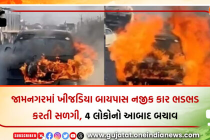 જામનગરમાં ખીજડિયા બાયપાસ નજીક કાર ભડભડ કરતી સળગી, 4 લોકોનો આબાદ બચાવ