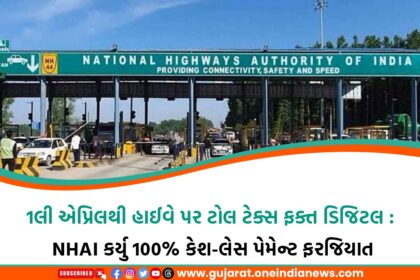 ભારતભરના હાઈવે પર મુસાફરી કરનારા વાહનચાલકો માટે મહત્વના સમાચાર છે. નેશનલ હાઈવે ઓથોરિટી ઓફ ઈન્ડિયા (NHAI) એ જાહેરાત કરી છે કે 1લી એપ્રિલ 2026થી દેશભરના તમામ ટોલ પ્લાઝા પર સંપૂર્ણ ડિજિટલ પેમેન્ટ સિસ...