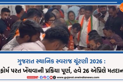 ગુજરાત સ્થાનિક સ્વરાજ ચૂંટણી 2026 : ફોર્મ પરત ખેંચવાની પ્રક્રિયા પૂર્ણ, હવે 26 એપ્રિલે મતદાન