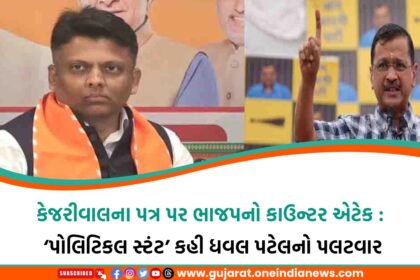 કેજરીવાલના પત્ર પર ભાજપનો કાઉન્ટર એટેક : ‘પોલિટિકલ સ્ટંટ’ કહી ધવલ પટેલનો પલટવાર