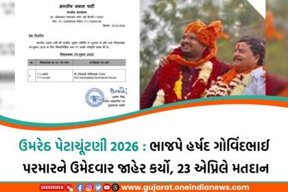ઉમરેઠ પેટાચૂંટણી 2026: ભાજપે હર્ષદ ગોવિંદભાઈ પરમારને ઉમેદવાર જાહેર કર્યો, 23 એપ્રિલે મતદાન