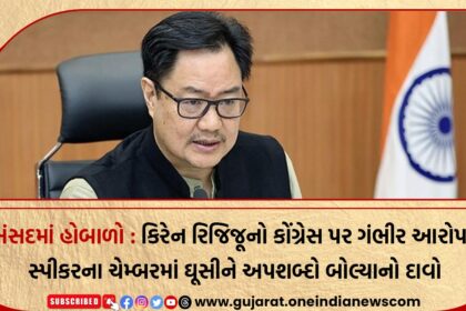 સંસદમાં હોબાળો : કિરેન રિજિજૂનો કોંગ્રેસ પર ગંભીર આરોપ, સ્પીકરના ચેમ્બરમાં ઘૂસીને અપશબ્દો બોલ્યાનો દાવો