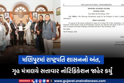 મણિપુરમાં લાંબા સમયથી લાગુ રહેલું રાષ્ટ્રપતિ શાસન અંતે હટાવી લેવામાં આવ્યું છે. ગૃહ મંત્રાલયે મંગળવારે (4 ફેબ્રુઆરી) સત્તાવાર નોટિફિકેશન જાહેર કરીને આ નિર્ણયની જાહેરાત કરી હતી. નોટિફિકેશન ...