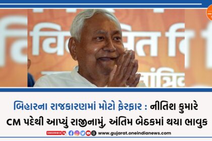 બિહારની રાજનીતિમાં મોટી હલચલ સર્જાઈ છે. બિહારના મુખ્યમંત્રી અને JDUના સર્વોચ્ચ નેતા Nitish Kumar એ મુખ્યમંત્રી પદેથી રાજીનામું આપવાની જાહેરાત કરી છે. તેમણે સોશિયલ મીડિયા પોસ્ટ દ્વારા જણાવ્યું કે ત?...