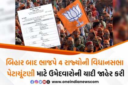 બિહાર વિધાનસભાની પ્રથમ ઉમેદવાર યાદી જાહેર કર્યા પછી, ભારતીય જનતા પાર્ટીએ હવે ચાર રાજ્યોની વિધાનસભાની પેટાચૂંટણીઓ માટે પાંચ બેઠકો પર પોતાના ઉમેદવારોની યાદી જાહેર કરી છે. આ યાદીની ખાસ વાત એ ?...