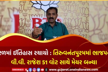 કેરળમાં ઈતિહાસ રચાયો : તિરુવનંતપુરમમાં ભાજપના વી.વી. રાજેશ 51 વોટ સાથે મેયર બન્યા