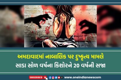 અમદાવાદમાં નાબાલિક પર દુષ્કૃત્ય મામલે સાડા સોળ વર્ષના કિશોરને 20 વર્ષની સજા