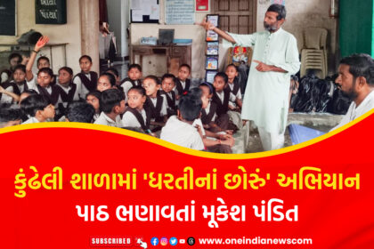 કુંઢેલી શાળામાં ‘ધરતીનાં છોરું’ અભિયાન પાઠ ભણાવતાં મૂકેશ પંડિત