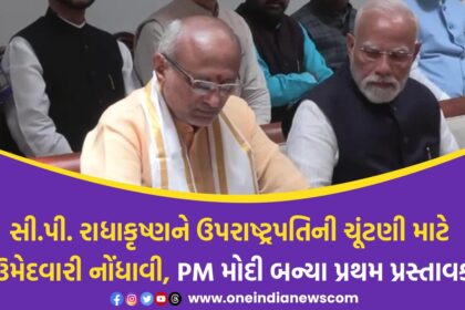 સી.પી. રાધાકૃષ્ણને ઉપરાષ્ટ્રપતિની ચૂંટણી માટે ઉમેદવારી નોંધાવી, PM મોદી બન્યા પ્રથમ પ્રસ્તાવક