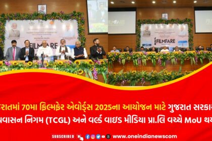 ગુજરાતમાં 70મા ફિલ્મફેર એવોર્ડ્સ 2025ના આયોજન માટે ગુજરાત સરકારના પ્રવાસન નિગમ (TCGL) અને વર્લ્ડ વાઇડ મીડિયા પ્રા.લિ વચ્ચે MoU થયા