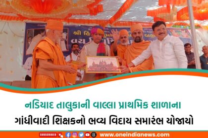 નડિયાદ તાલુકાની વાલ્લા પ્રાથમિક શાળાના ગાંધીવાદી શિક્ષકનો ભવ્ય વિદાય સમારંભ યોજાયો