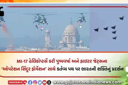 MI-17 હેલિકોપ્ટર્સે કરી પુષ્પવર્ષા અને ફાઇટર જેટ્સના ‘ઓપરેશન સિંદૂર ફોર્મેશન’ સાથે કર્તવ્ય પથ પર ભારતની શક્તિનું પ્રદર્શન