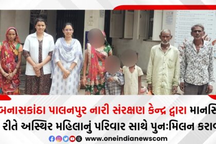 બનાસકાંઠા પાલનપુર નારી સંરક્ષણ કેન્દ્ર દ્વારા માનસિક રીતે અસ્થિર મહિલાનું પરિવાર સાથે પુનઃમિલન કરાવ્યું