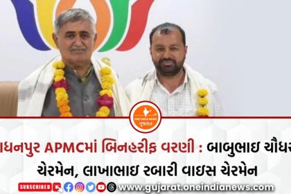 રાધનપુર APMCમાં બિનહરીફ વરણી : બાબુભાઇ ચૌધરી ચેરમેન, લાખાભાઇ રબારી વાઇસ ચેરમેન