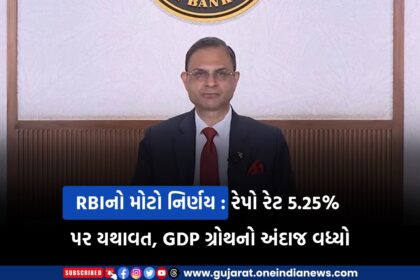 RBIનો મોટો નિર્ણય : રેપો રેટ 5.25% પર યથાવત, GDP ગ્રોથનો અંદાજ વધ્યો