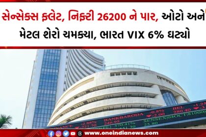 સેન્સેક્સ ફ્લેટ, નિફ્ટી 26200 ને પાર, ઓટો અને મેટલ શેરો ચમક્યા, ભારત VIX 6% ઘટ્યો