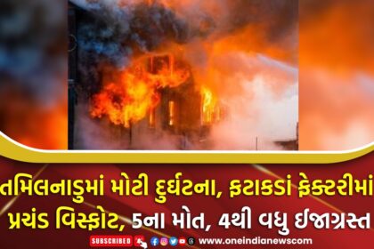 તમિલનાડુમાં મોટી દુર્ઘટના, ફટાકડાં ફેક્ટરીમાં પ્રચંડ વિસ્ફોટ, 5ના મોત, 4થી વધુ ઈજાગ્રસ્ત