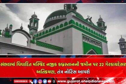 ઉત્તર પ્રદેશના સંભલમાં આવેલી વિવાદિત શાહી જામા મસ્જિદ નજીકના કબ્રસ્તાનની જમીન પર ગેરકાયદેસર અતિક્રમણની ફરિયાદો બાદ જિલ્લા પ્રશાસને સોમવારે (30 ડિસેમ્બર) ભારે પોલીસ બંદોબસ્ત વચ્ચે જમીન મા?...