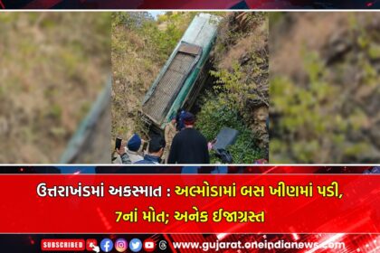 ઉત્તરાખંડમાં વર્ષના અંતિમ દિવસોમાં એક અત્યંત કરૂણ દુર્ઘટના સામે આવી છે. અલ્મોડા જિલ્લાના ભીકિયાસૈન વિસ્તારમાં મુસાફરોથી ભરેલી એક ખાનગી બસ અચાનક કાબૂ બહાર જઈ ઊંડી ખીણમાં ખાબકી, જેમાં સાત લ?...